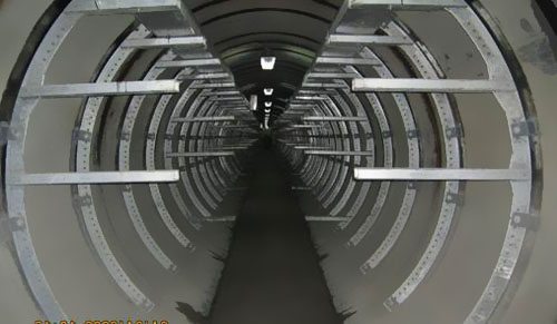 從裕溪路路旁邊一處不起眼的道口進入,順著狹隘樓梯來到地下12米深處,好像科幻電影“黑客帝國”中震懾的場景豁然出現在眼前。這兒空間寬約2.5米,兩旁銀白色的金屬構架之上規整鋪設著高壓電纜,一向延伸至遠方不見止境。